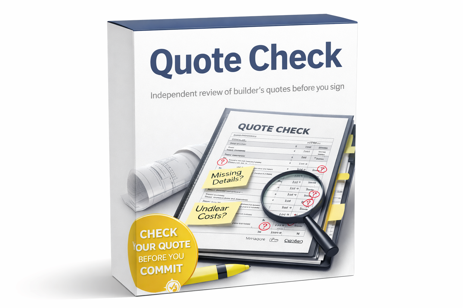 No. I don’t negotiate on your behalf or speak to your builder. I review the quote independently and show you where wording, detail, or missing items could lead to extra costs, so you can go back to your builder informed and confident.